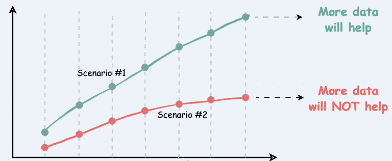 A good practice is to plot learning curves: model performance vs. training set size. If a model’s curve plateaus quickly, but another model’s performance keeps improving with more data, the other model may win in the long run when you have that additional data.