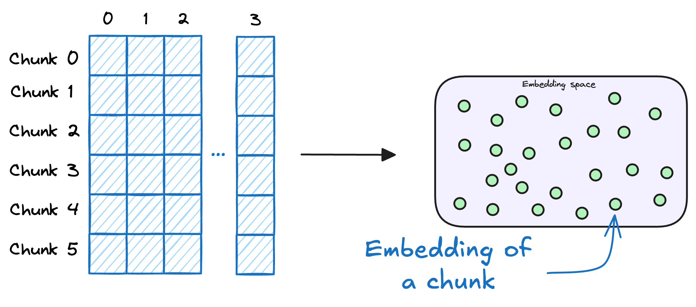 After chunking, we embed the chunks using an embedding model.