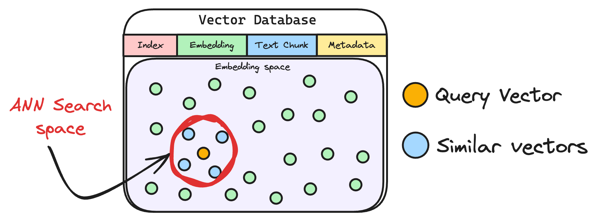 These embeddings are then stored in the vector database:
