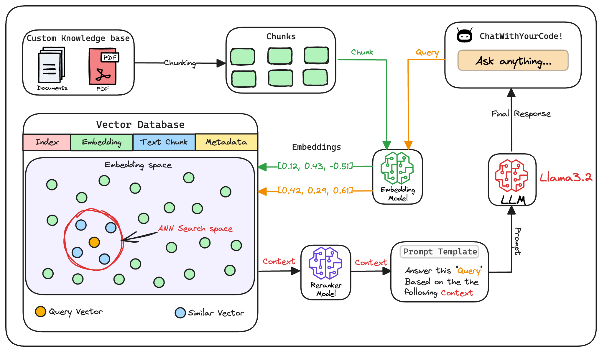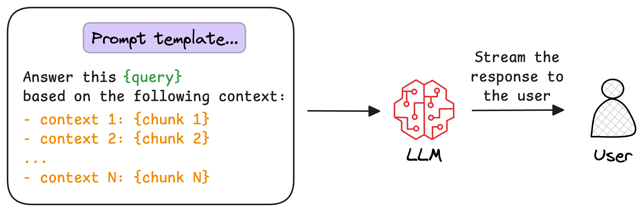 Once the most relevant chunks are re-ranked, they are fed into the LLM.