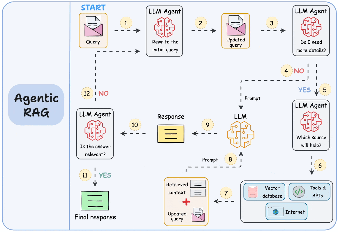 Many real-world queries are too complex for a single retrieval step. If a question requires synthesizing multiple pieces of information, a standard RAG pipeline may fall short. Solutions include: