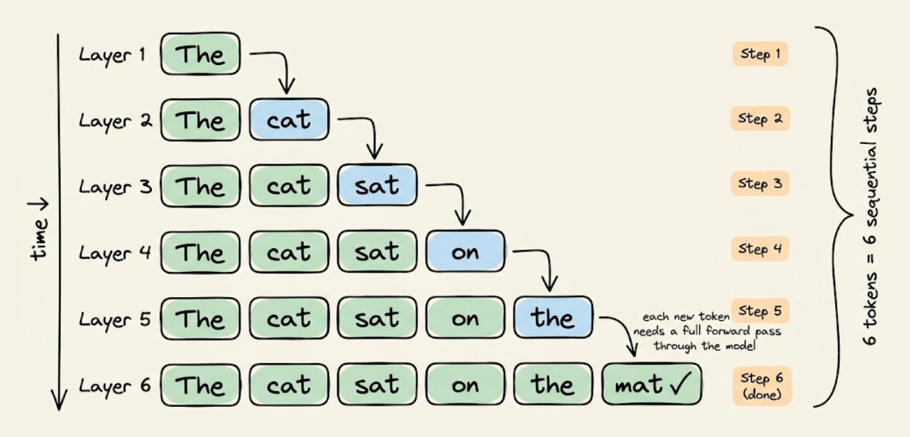 Every production LLM today generates text the same way, i.e., one token at a time, left to right. GPT-4, Claude, Gemini, DeepSeek, LLaMA. All of them use autoregressive (AR) generation, where each token depends on every token before it.