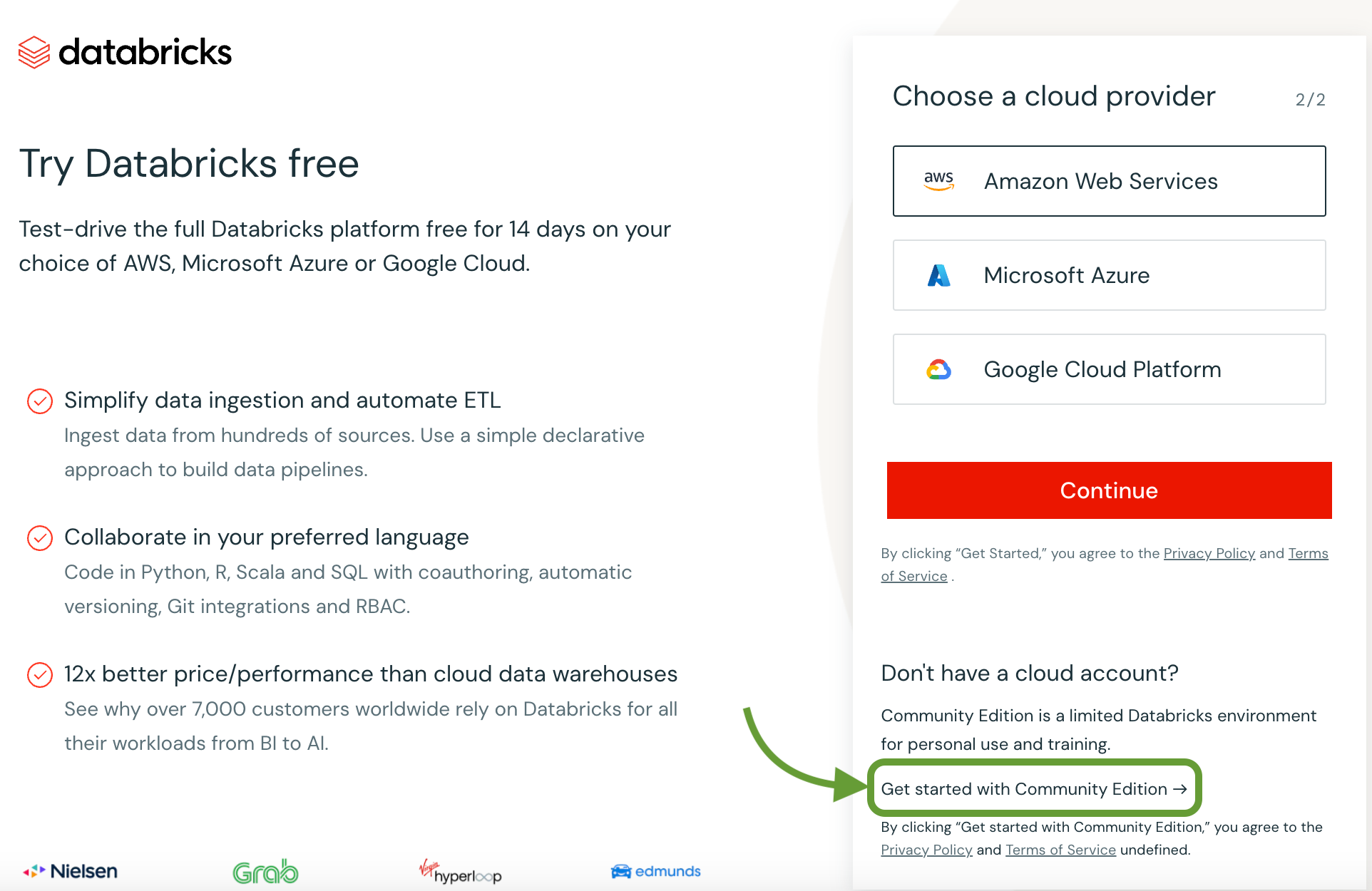 - Create a Databricks community edition account.