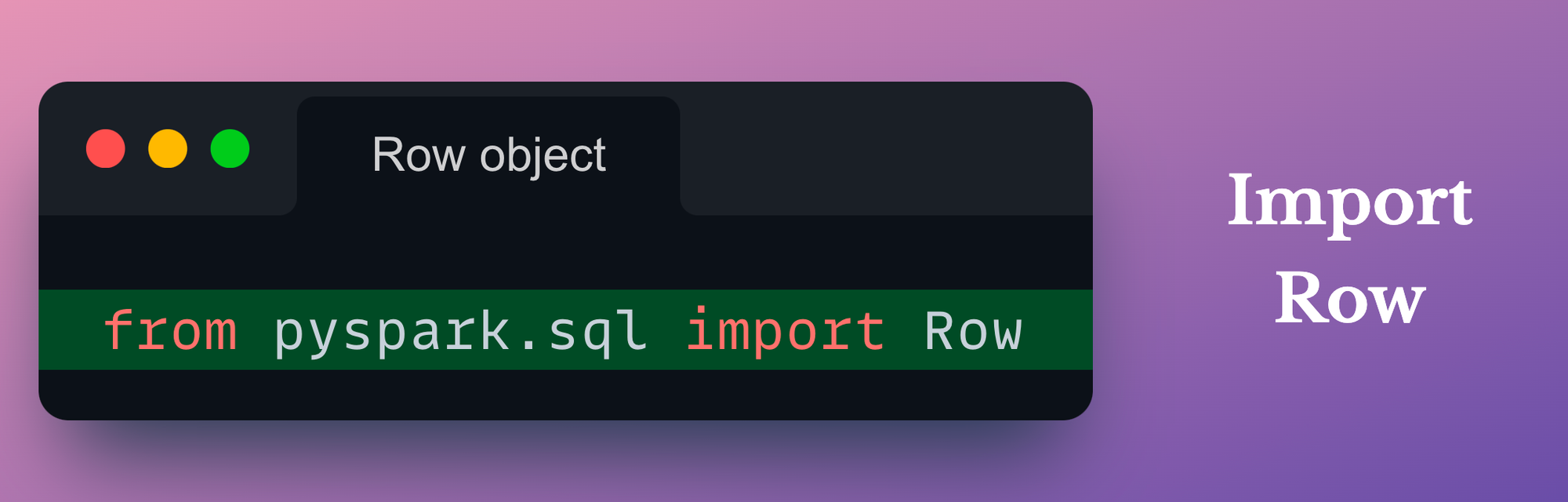 In PySpark, these row objects are instances of the generic Row class, which is imported as follows: