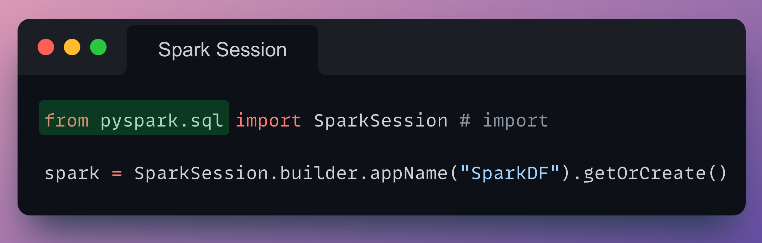 We declare a Spark Session as follows: