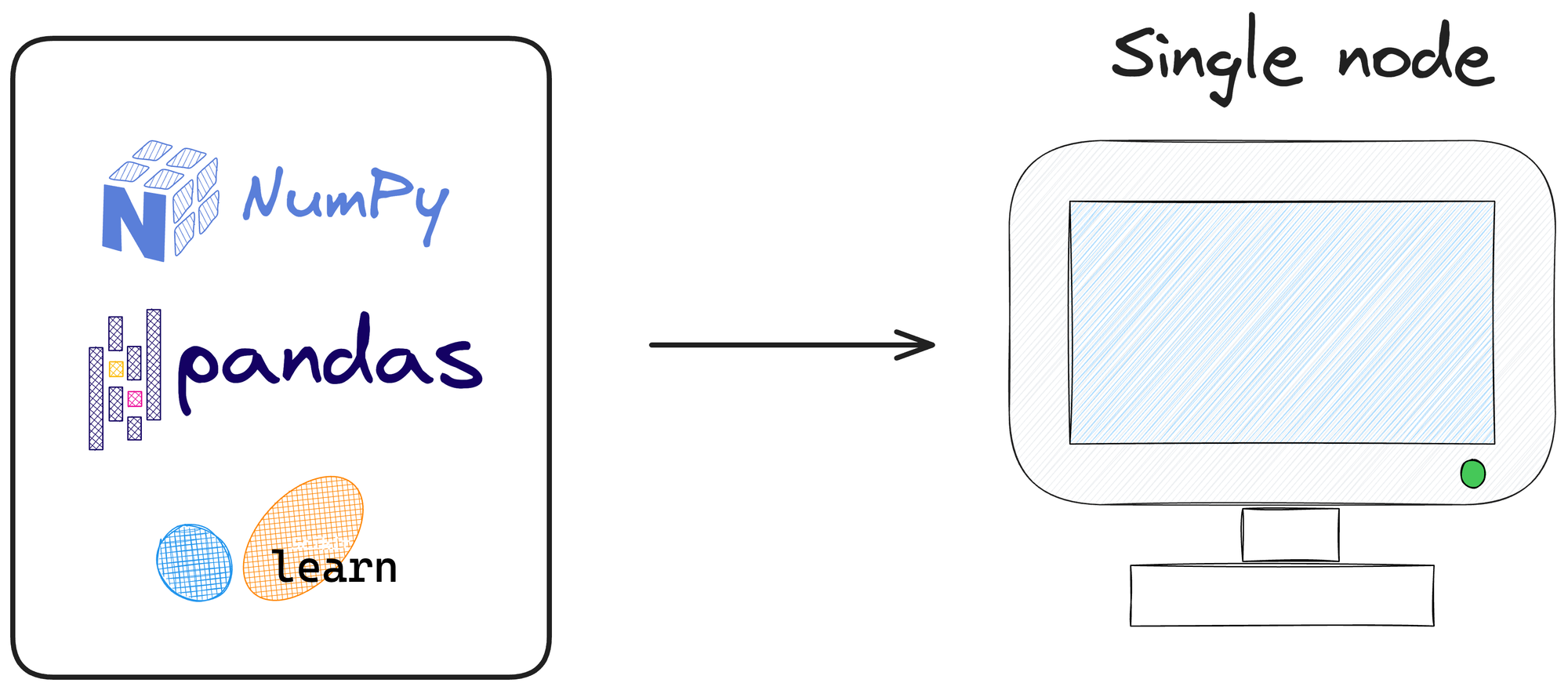 This is because these tools are designed primarily for single-node processing. As a result, they struggle to seamlessly scale across multiple machines.