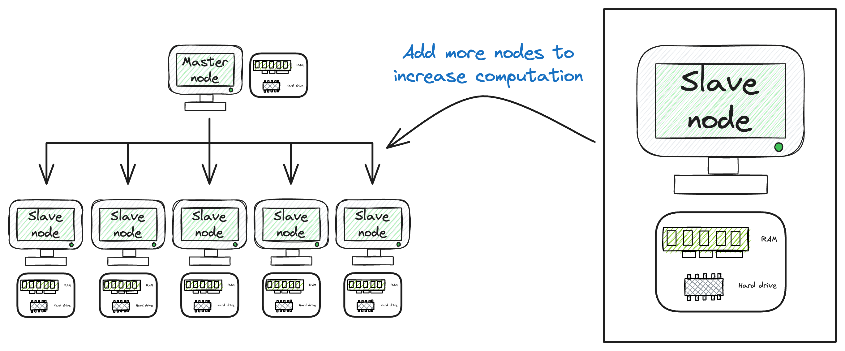 More specifically, scaling a distributed system just means adding more machines to the network. In other words, one can significantly enhance processing power by simply adding more machines.