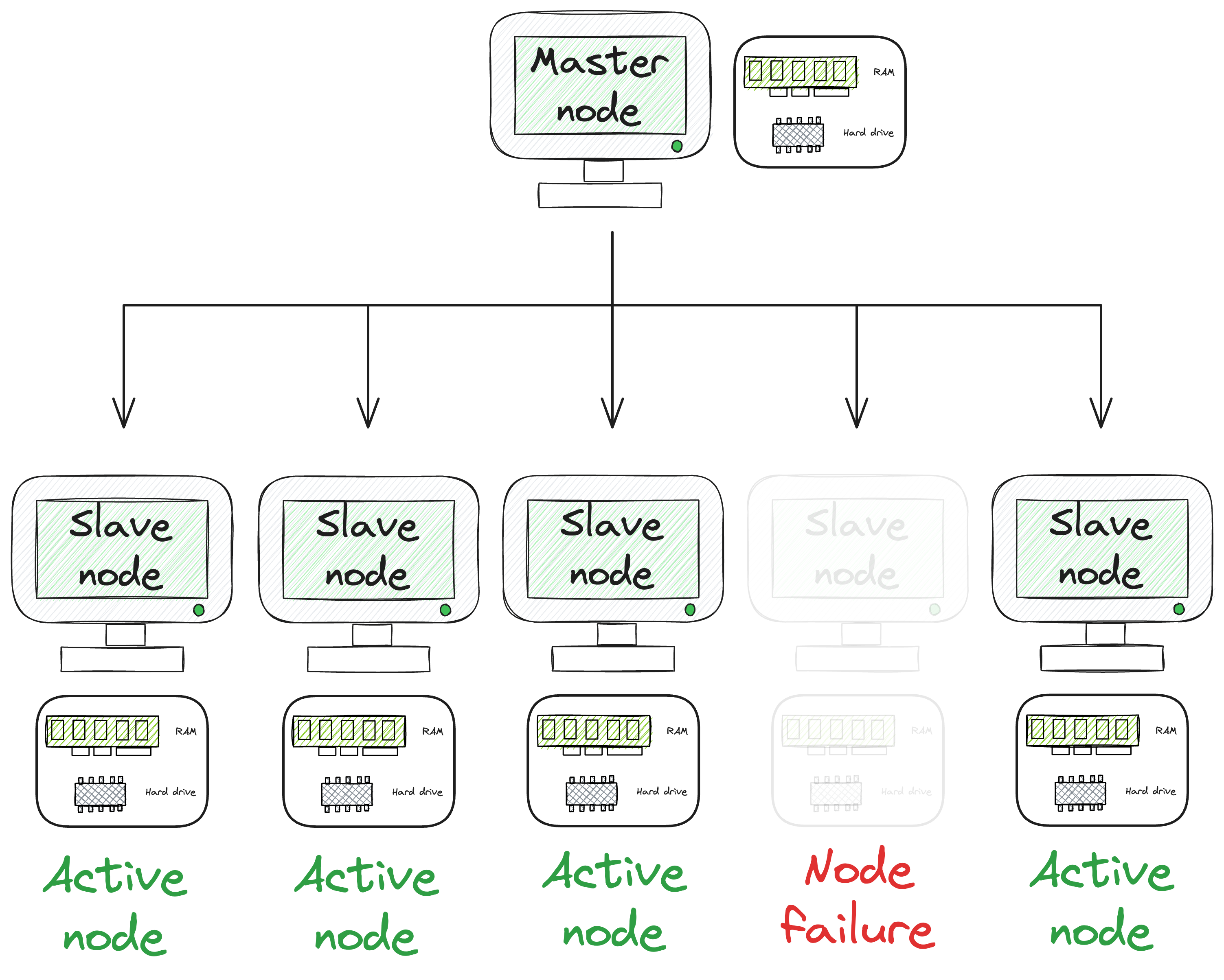 The slave node is responsible for carrying out the received task on its end, updating the master node in case of any failures, and under successful execution, it must revert back to the master node with the generated results.