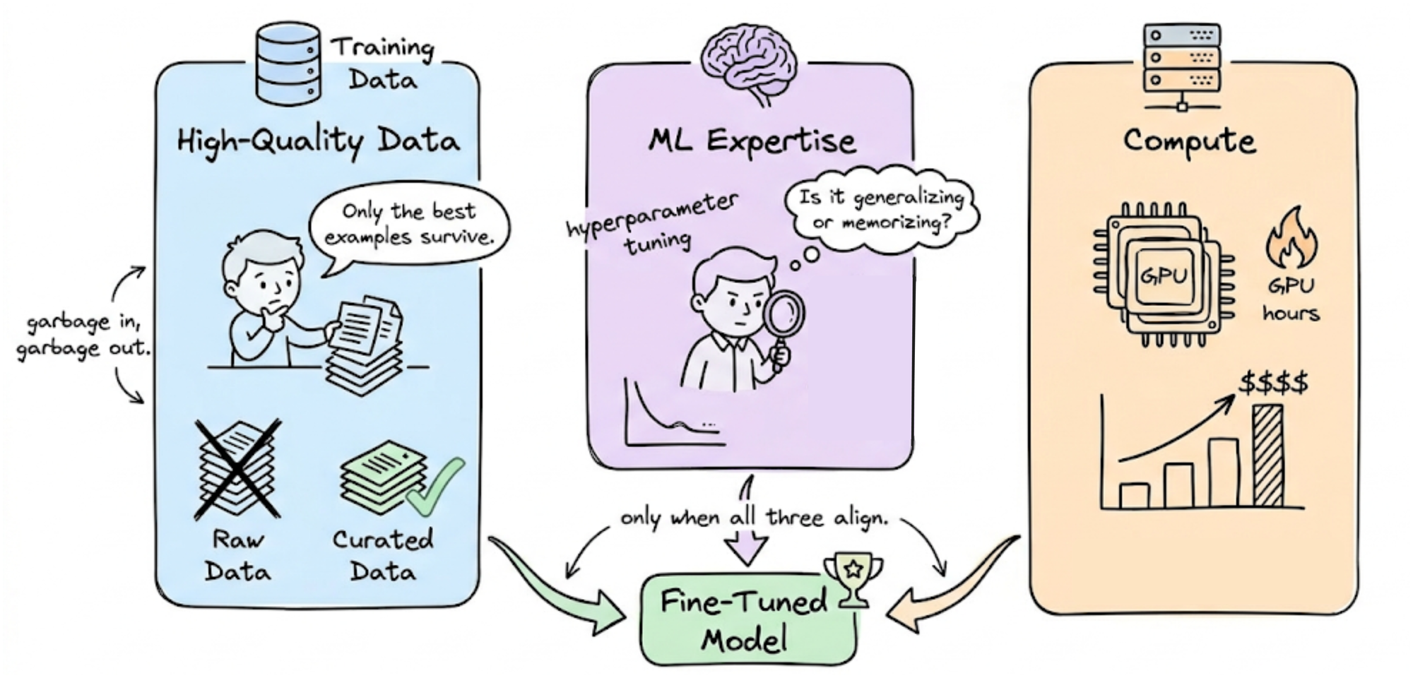However, still, fine-tuning is a significant investment. It requires high-quality data, ML expertise, and substantial compute resources.