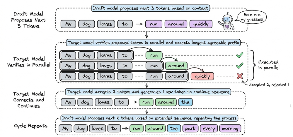 Next, we explored speculative decoding, which leverages a smaller draft model to accelerate generation without sacrificing output quality, along with its practical trade-offs like acceptance and memory overhead.