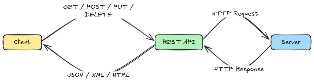 It typically uses human-readable, text-based data formats like JSON. Its stateless nature means each request contains all the information needed to process it, making it highly scalable and loosely coupled.