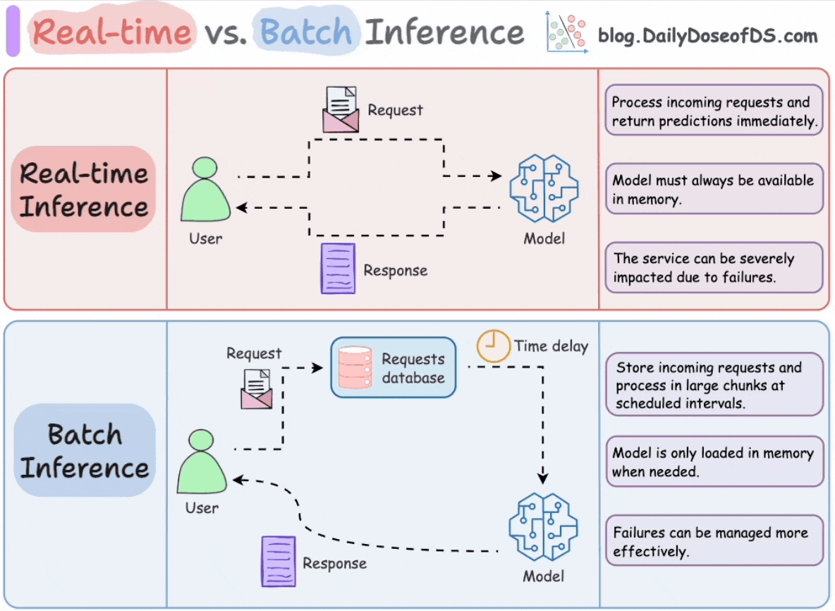 Both batch inference and real-time inference have distinct use cases and implications for how you deploy and monitor models. This choice is not merely a technical detail but a core product and business strategy decision.