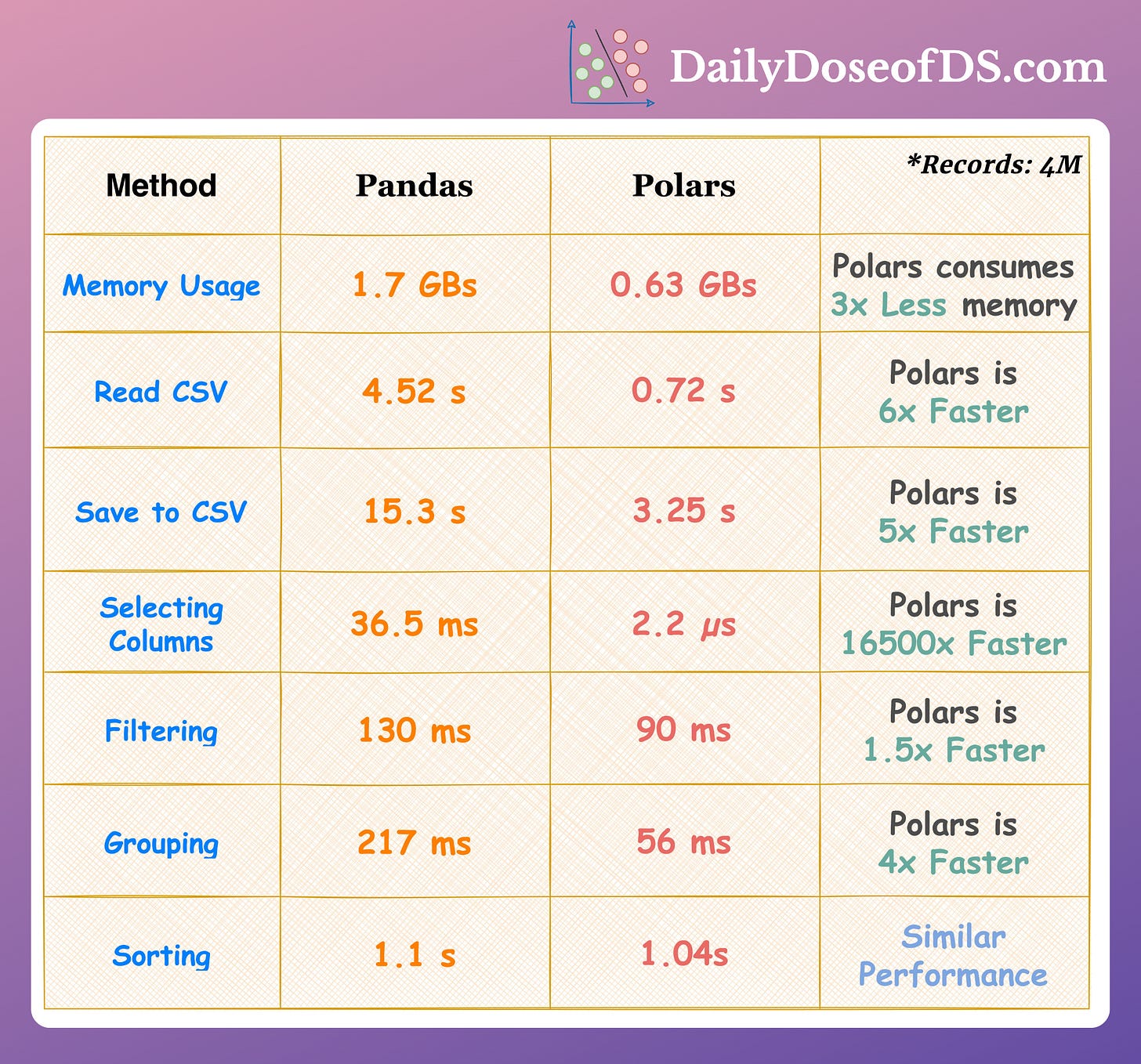 👉 Over to you: What are some other faster alternatives to Pandas that you are aware of?