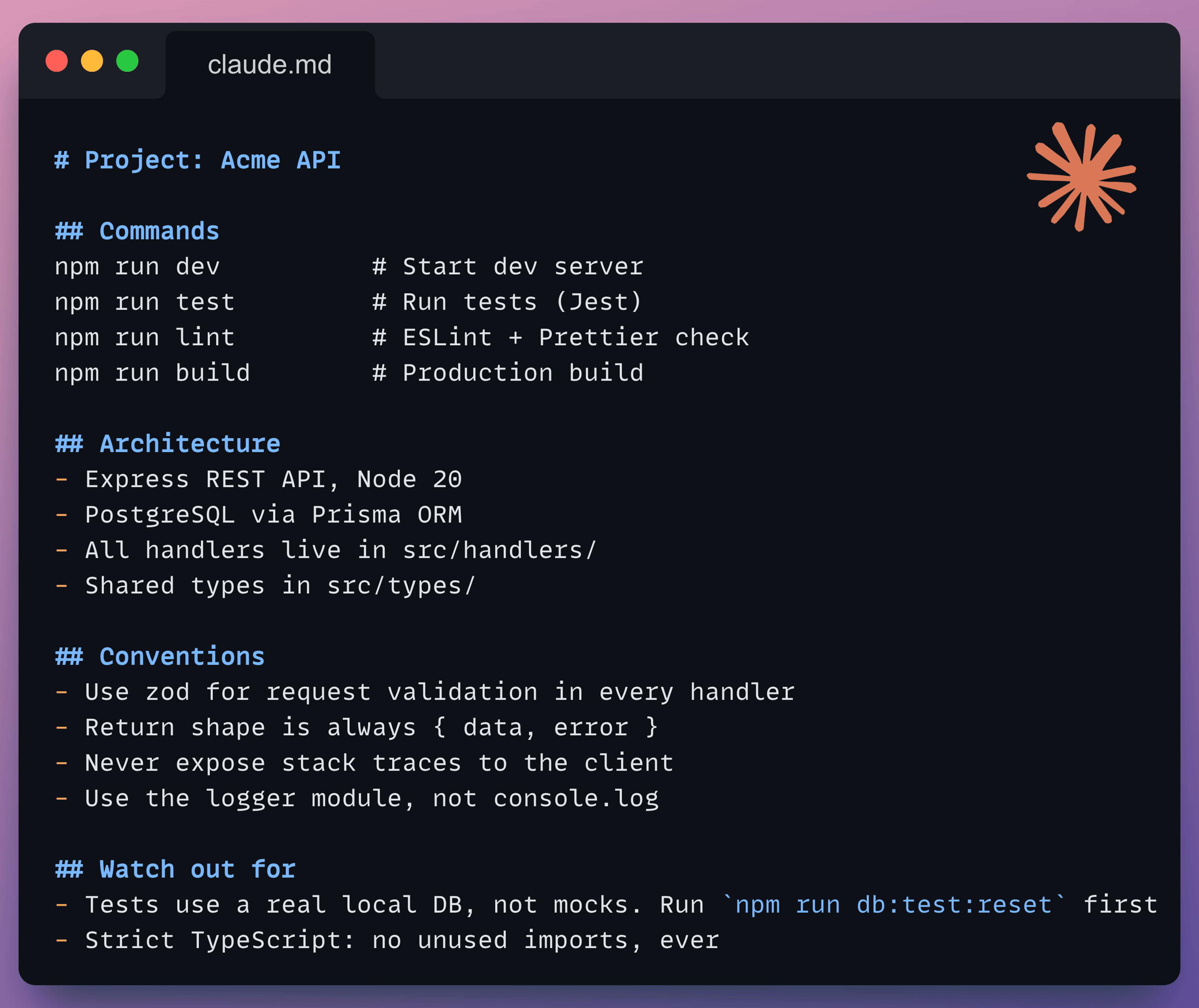That’s ~20 lines. It gives Claude everything it needs to work productively in this codebase without constant clarification.