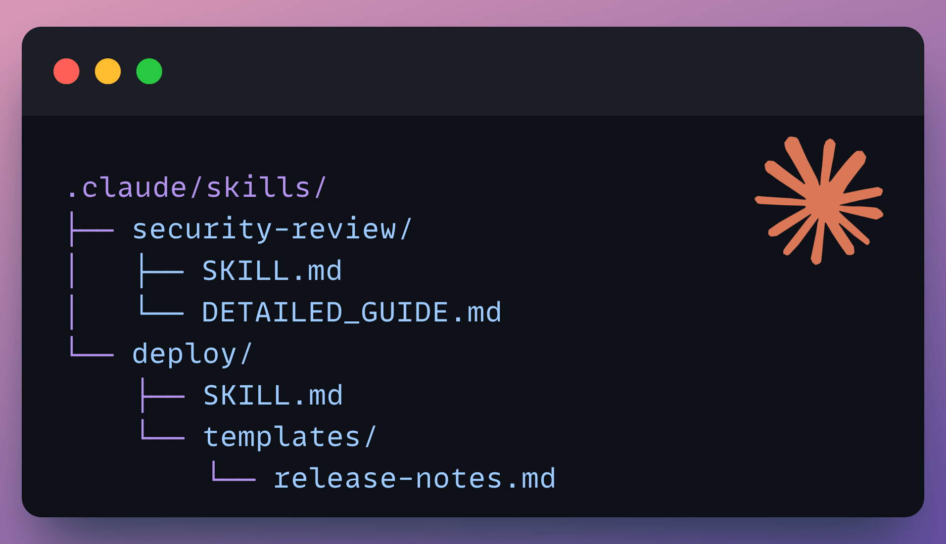 The key difference from commands: skills can bundle supporting files alongside them. The DETAILED_GUIDE.md reference above pulls in a detailed document that lives right next to SKILL.md. Commands are single files. Skills are packages.