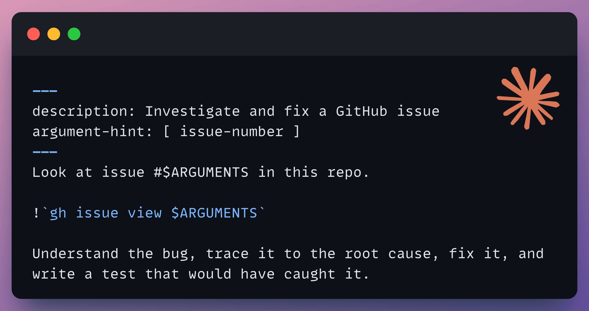 Running /project:fix-issue 234 feeds issue 234’s content directly into the prompt.