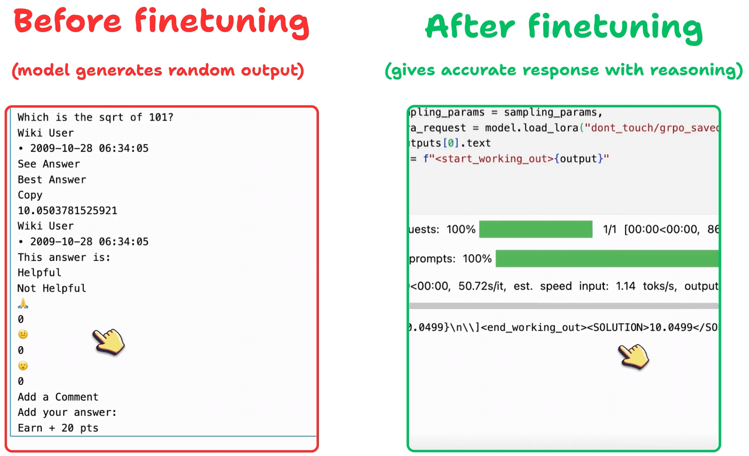 In GRPO, we use deterministic functions to validate the response and assign a reward. No manual labelling required!