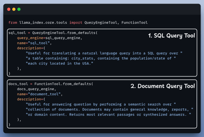 We begin by equipping LLM with two tools: Document & Text-to-SQL Query.