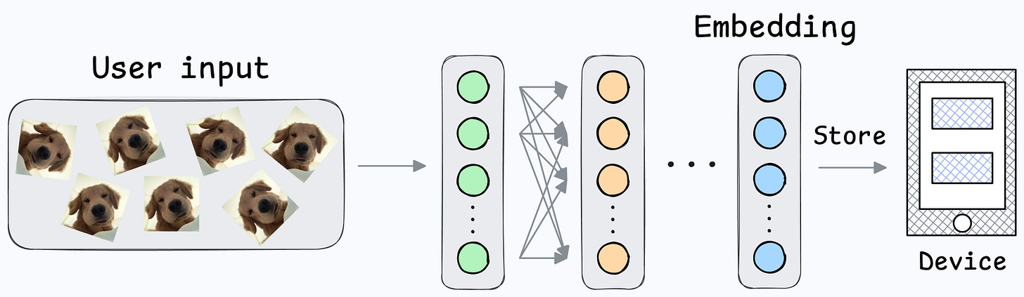 During the setup phase, the user will provide facial data, which will create a user embedding: