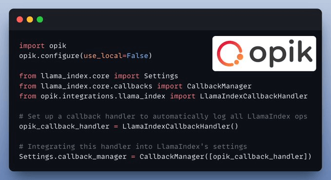 LlamaIndex also offers a seamless integration with CometML’s Opik. You can use this to trace every LLM call, monitor, and evaluate your LLM application.