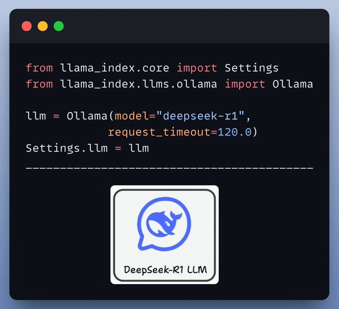We will use DeepSeek-R1 as LLM, locally served using Ollama.