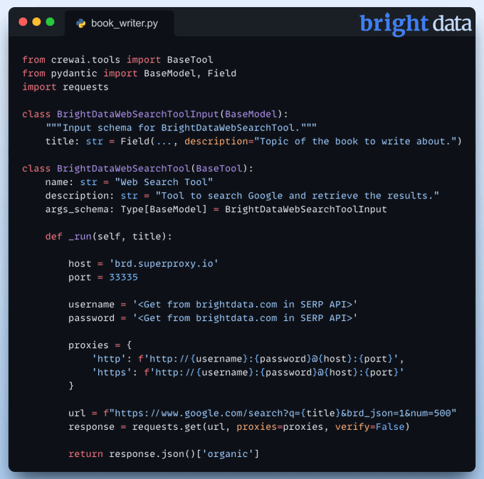 Thus, we'll first gather recent search results from Bright Data's SERP API.