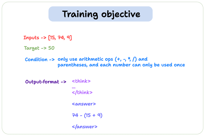 We'll fine-tune our model using the Countdown dataset, a popular resource for evaluating and enhancing the reasoning and math capabilities of an LLM.