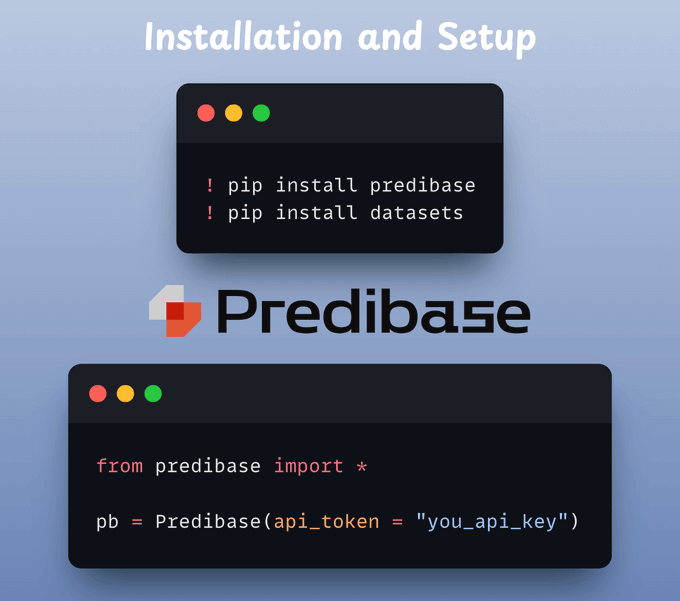 First, we install all the necessary dependencies and complete the setup (you need a ​Predibase API key​):
