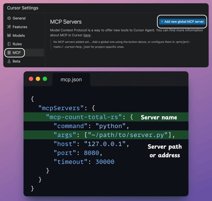 In this case, Cursor is an MCP host/client that will use the tools exposed by the MCP server.