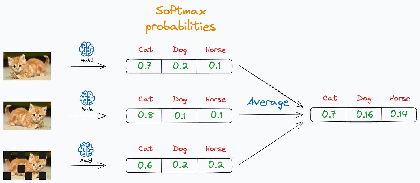 This way, it creates an ensemble of predictions by considering multiple augmented versions of the input, which leads to a more robust final prediction.