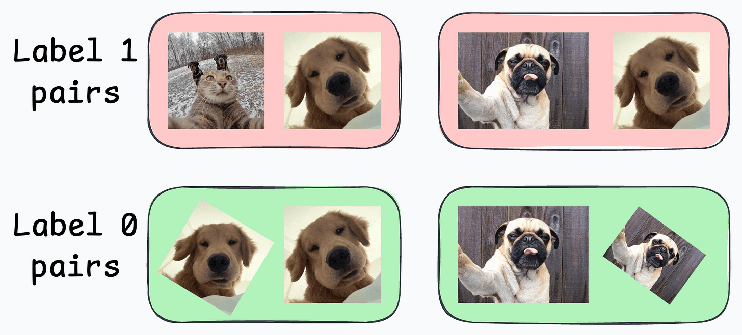Since during the data preparation step, we paired the instance either with the same or a different class…