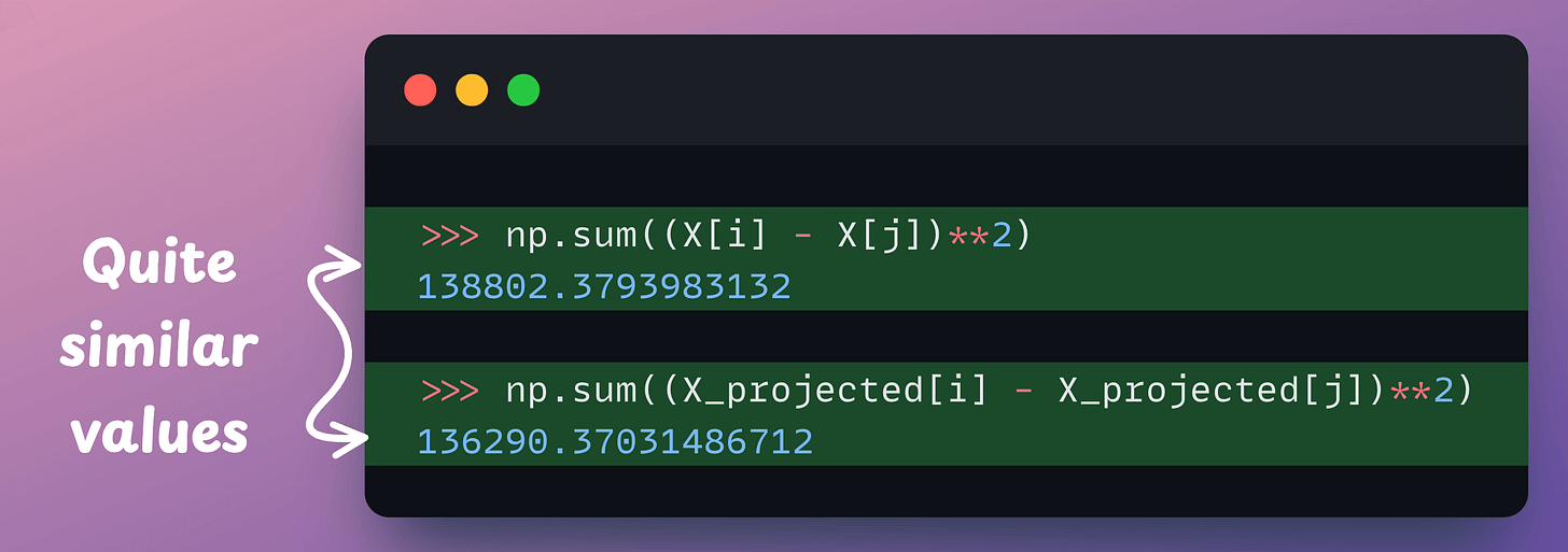This hints that if we have a pretty high-dimensional dataset, we can transform it to a lower dimension while almost preserving the distance between any two points.