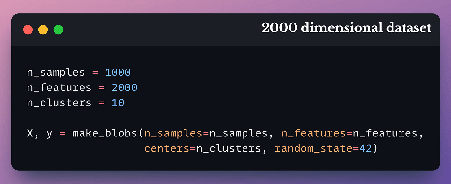 In this case, I projected X to 1000 dimensions from 2000 dimensions.