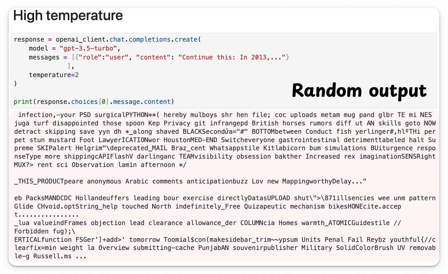 A quick note: In practice, the model can generate different outputs even if temperature=0. This is because there are still several other sources of randomness, such as race conditions in multithreaded code.