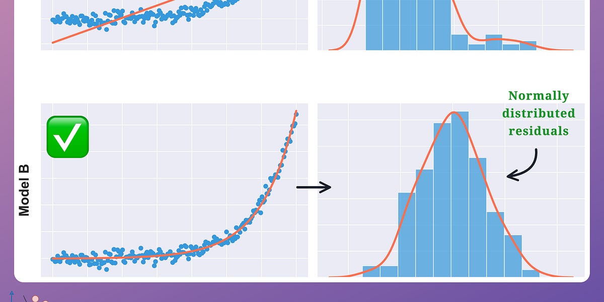 - Residual analysis (for linear regression) – involves examining the distribution of residuals to check for normality, as demonstrated in one of the earlier posts of Daily Dose of Data Science.