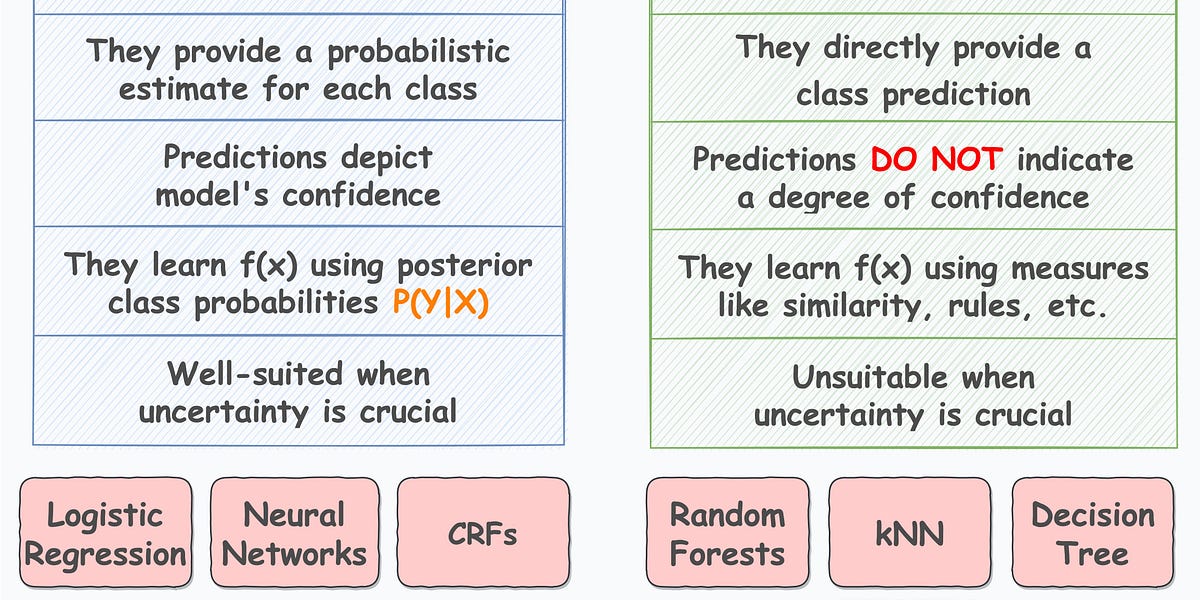 - Probabilistic models: These models output a probabilistic estimate for each class.
